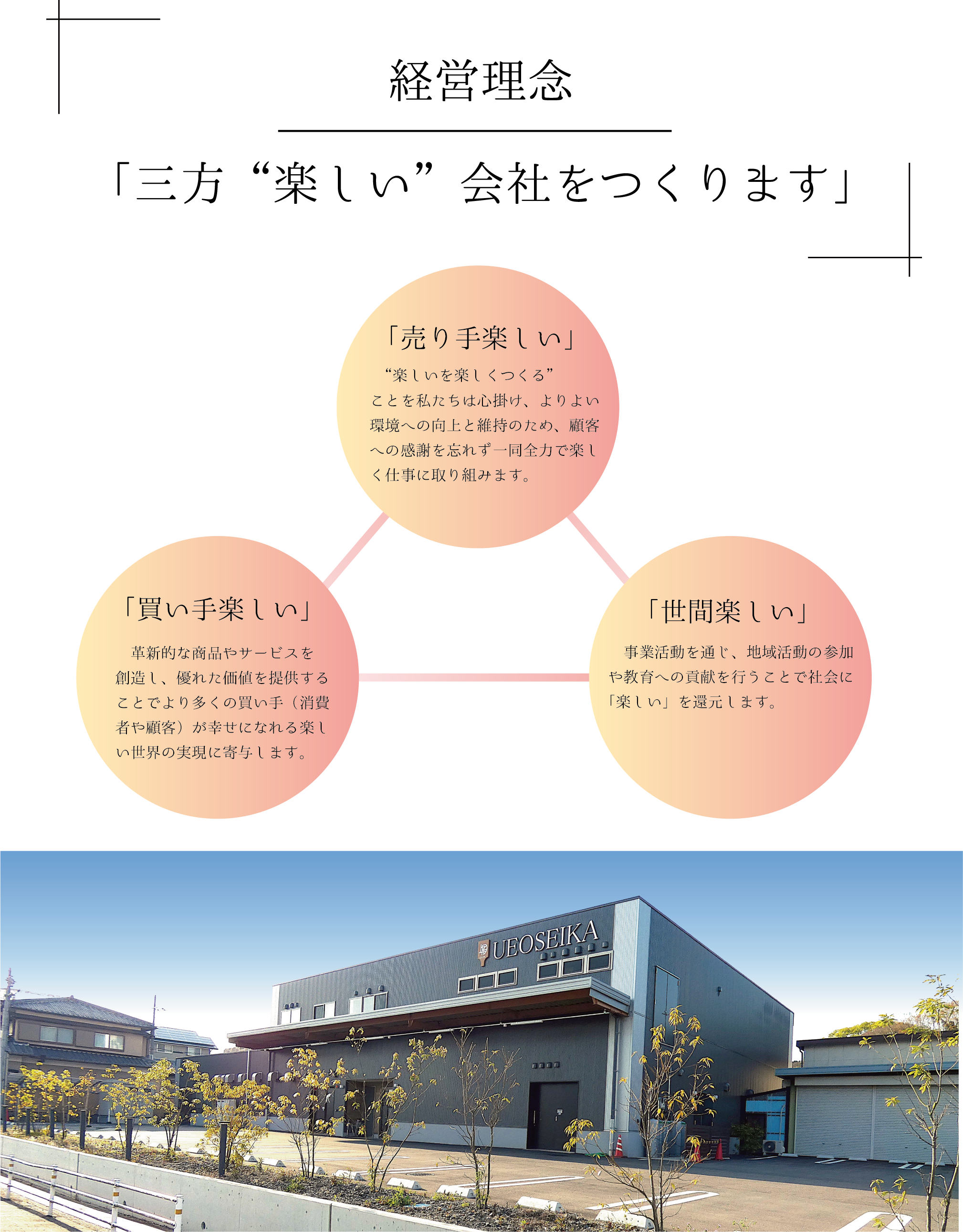 - 創業者・上尾義之が運営していた金銀糸工場を畳み、菓子事業者から事業を承継する。